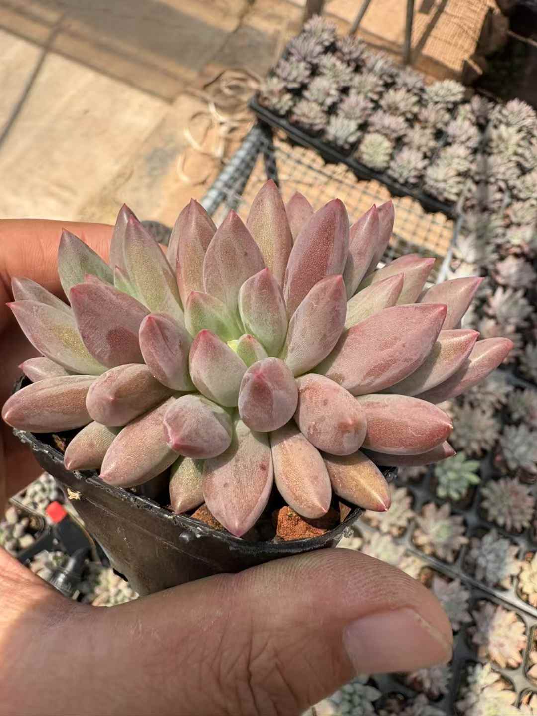 商品名:多肉植物 ローズゴールド 70株セット 2号鉢 品番AD00003